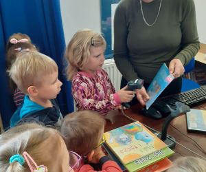 W ramach Tygodnia Czytania Dzieciom grupa Żabki z Przedszkola Publicznego nr 2 w Łęcznej miała zajęcia na świeżym powietrzu, w naszym ukwieconym wewnętrznym ogródeczku. Wierszyk Doroty Gellner „W ogródku”, był inspiracją do rozmowy o swoich ogródkach. Dzieci chętnie opowiadały jak pomagają swoim rodzicom i dziadkom w ich pielęgnowaniu. Pochwaliły się również swoim własnym ogródeczkiem przedszkolnym, w którym hodują miedzy innymi szczypiorek i bazylię. :Brawo Żabki”. Niezłe z was ogrodniczki. Po tak mile spędzonym czasie w naszym bibliotecznym ogródku przyszła pora na wypożyczanie książeczek.
