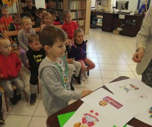 W Tygodniu Bibliotek w dniu 11.05 gościliśmy przedszkolaki z Przedszkola Publicznego nr 3 z grupy „Kubusie Puchatki”. Prowadząca spotkanie przygotowała dla dzieci zgadywanki, opowiedziała bajkę, i przeczytała wiersz autorstwa Anny Kamieńskiej pt. „Książka”. W dalszej części przedszkolaki miały za zadanie odgadnąć m.in. postaci z bajek na podstawie fotografii i zgaduj-zgaduli. Nie zabrakło również zabaw ruchowych „Ukryta książka” (wersja zabawy „Ciepło-zimno”) i konkurencji „Z książką na głowie”, w których dzieci wykazały dużo entuzjazmu i zapału.