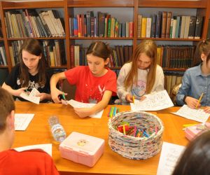 Podczas spotkania uczniowie rozmawiali o tym, jakie korzyści niesie za sobą czytanie książek, zapoznali się z historią książki, ciekawostkami bibliotecznymi oraz rozwiązywali krzyżówkę z hasłami dotyczącymi książek. Był także czas na zajęcia plastyczne, podczas których dzieci wykonywały zakładki do książek, które zabrały ze sobą do domu.