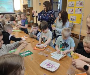 Był także czas na zajęcia plastyczne, podczas których dzieci tworzyły własną książeczkę sensoryczną.
