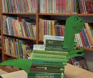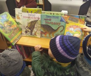W poniedziałek dzieci z przedszkola Mali Odkrywcy przywitał biblioteczny Dinuś. Dzieci pięknie się z nim przywitały i z radością wypożyczyły książeczki o dinozaurach by poznać jego losy i jego przyjaciół.