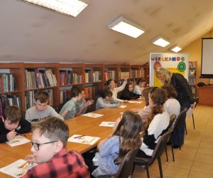 W dniu 29.03.2023 r. Bibliotekę Główną odwiedziła klasa 4 B ze Szkoły Podstawowej nr 2 w Łęcznej wraz z wychowawczynią . Uczniowie wzięli udział w zajęciach dotyczących Świąt Wielkanocnych. Dzieci opowiadały z czym kojarzą im się święta Wielkiej Nocy oraz wysłuchały bajki o tradycji związanej z Niedzielą Palmową. Następnie uczniowie rozwiązywali krzyżówki z hasłami dotyczącymi Wielkanocy i odnajdywali różnice na obrazkach wielkanocnych. Pierwsze trzy osoby, które najszybciej wykonały zadania otrzymały wielkanocne figurki z czekolady. Na koniec zajęć uczniowie wykonywali kartki wielkanocne, które zabrali ze sobą do domu.