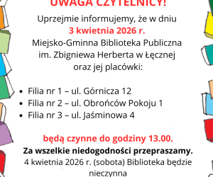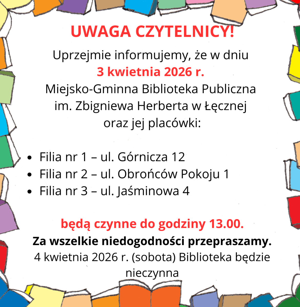 KRÓTSZE GODZINY OTWARCIA BIBLIOTEKI 3 KWIETNIA